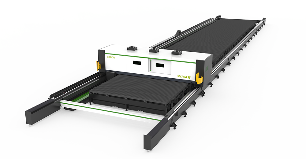 松谷激光科技WIND系列線軌式超大幅面光纖激光切割機,龍門橫梁浮動結構,零間隙地軌拼接式機身,德國PRECIETC非接觸式電容式傳感頭,可開啟無人看護加了模式。應用于:碳鋼激光切割,不銹鋼激光切割